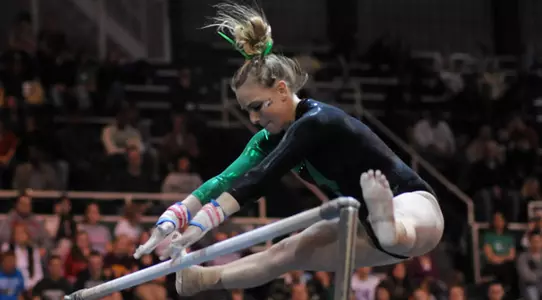 Not far behind was senior Erin Grigg (North Bay, Ontario-Widdifield), who finished third all-around with a score of 38.475. Grigg finished first on the vault and bars with a 9.825 and 9.750, respectively, while also tallying a 9.825 in the floor exercise and a 9.075 on the balance beam.