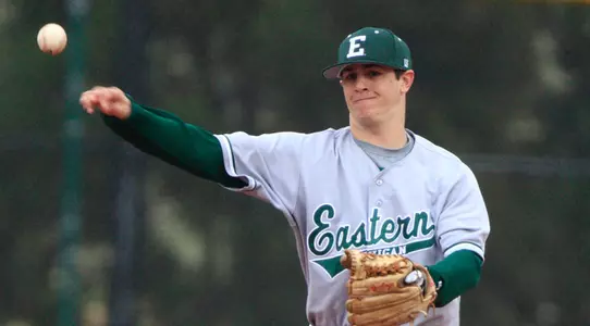 YPSILANTI, Mich. (EMUEagles.com) — Pitching was the pervailing theme Saturday afternoon, May 7, as Eastern Michigan University starter Joe Battistelli outlasted Tom Barry in a 1-0 walk-off victory over Northern Illinois University at Oestrike Stadium. The Eagles won the game in the bottom of the ninth on a Tucker Rubino single which plated Brent Ohrman.
