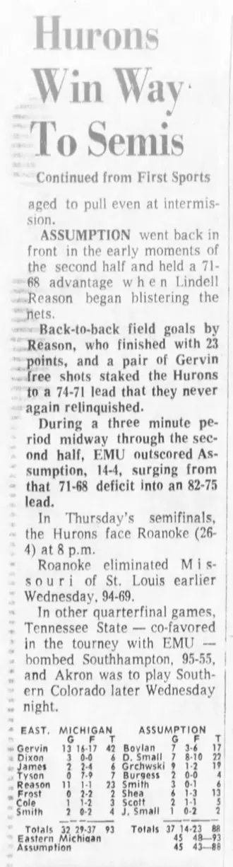 "I was well over 30 at halftime," said Tyson, who lives in Ypsilanti and still holds EMU season tickets. "After I got to 47, I was on the bench. I was in such a zone and was knocking it down so easily, there was little anyone could do stop me. For most players, you only get a few of these nights, and you hope they don't all happen in a pick-up game or practice."