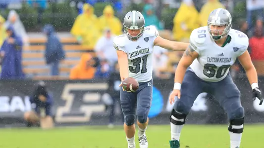 EMU: Tied with Rich Hanschu (1979-80) for first in the EMU record books with a 43.4 career punting average...Ranks eighth in EMU history with 7,383 yards punting...Only punter in Eastern Michigan history to record two 70+ yard punts in his career...Has 51 balls downed inside the opponent’s 20-yard line to go along with 37 that traveled longer than 50-yards...2021: Named fourth team preseason All-American by Phil Steele's College Football Preview...Selected first-team Preseason All-MAC by Phil Steele while grabbing second-team accolades from Athlon Sports...Drafted No. 31 overall by the Ottawa RedBlacks in the 2021 Canadian Football League Draft...2020: Earned Second Team All-MAC honors from Phil Steele...Recognized as a nominee for the Ray Guy Award...Led the MAC in punting while ranking eighth nationally...Averaged 44.25 yards per punt with 16 punts for 708 yards (total which would rank 3rd in EMU history if a minimum of 20 punts were reached)...Had six punts for 44.2 yards against Toledo (Nov. 18) with two downed inside the 20-yard line...Downed two punts inside the 20 against Central Michigan (Nov. 27)...Had a pair of boots over 50-yarders with seven fair catches...2019: Earned Second Team All-MAC from Phil Steele's College Football Preview and fourth team preseason honors from Athlon Sports...Appeared in all 13 games for the Eagles...Totaled 13 50+ punts and 19 inside the 20-yard line…Tallied eight punts with a long of 44 yards, including two inside the 20 at Illinois (Sept. 14)..Belted two punts for an average of 50 yards, including a long of 53-yards against Western Michigan (Oct. 19)..Collected MAC West Special Teams Player of the Week after his performance versus the Broncos..Booted two punts over 50 yards against Buffalo (Nov. 2), Northern Illinois (Nov. 19), and Kent State (Nov. 29)...Notched five punts with three over 50 yards and four inside the 20 against Pittsburgh at the Quick Lane Bowl (Dec. 26)...2018: Selected Second Team All-MAC...Named MAC West Special Teams Player of the Week five times in 2018 (Sept. 17, Oct. 1, Oct. 8, Oct. 22, Nov. 26)... Is the first Eagle to be honored with a MAC weekly award five times in a season in program history...Recognized for his efforts as a nominee for the 2018 Ray Guy Award...Served as EMU’s punter in all 13 games...Punted 71 times for a total of 3,078 yards on the season...Booted 13 punts 50+ yards...24 punts pinned opponents inside the 20-yard line...Led Eastern’s special teams efforts against Buffalo (Sept. 15). with five punts for a 49.0 average per boot, including a 68-yard boom that pinned Buffalo at its own eight-yard line...Called upon nine times in EMU’s triple-overtime setback against Northern Illinois (Sept. 29), racking up 394 yards via punt, the 17th-most in program history...Registered five punts at Western Michigan (Oct. 6) tallying 242 yards, with four of his kicks pinning the Broncos inside their 20-yard-line...Longest punt of the day went a career-best 73 yards, the best punt for an Eagle since Nick Avondet booted for 74 yards against NIU in 1998...Battling windy conditions at Ball State (Oct. 20), he averaged 41.4 yards per kick and twice pinned the Cardinals inside their 20-yard line...2017: Appeared as a punter in nine games...Punted 33 times for a total of 1,407 yards...Averaged over 42 yards per punt...Had a season-long 63 yard punt against Central Michigan (Nov. 8) during a game in which he averaged 51 yards over four punts...Had nine punts of longer than 50 yards...Eight punts went inside the EMU 20-yard line...HIGH SCHOOL: Two-time letterwinner at Barrie North Collegiate in Barrie, Ontario...Played under Mr. Hamilton as a kicker and punter...Won the GBSSA Conference championships and was awarded senior offensive MVP...Started playing football in Grade 11 after staring in soccer...Attended the Kohl's Kicking Camp and given a five-star punting rating by the camp and ranked 18th among potential incoming college punters...Also earned MVP for high school soccer and rugby...PERSONAL: Full Name: Jacob Christopher Julien..Son of Rob and Jessica Julien...Has one sister, Laurel...Sports management major.