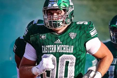 EMU: 2018: Selected Third Team All-MAC...Played in all 13 games for Eastern Michigan, earning 12 starts...Tallied 64 tackles on the season...Accumulated 7.5 TFL, including five sacks, on the year...Notched four tackles in the Eagles’ 20-19 win over Purdue (Sept. 8)...Recorded a three-tackle, including a tackle-for-loss, showing at San Diego State (Sept. 22)...Blocked a PAT against Western Michigan (Oct. 6), the third blocked kick of his career...Notched five tackles and his first sack of the 2018 season in EMU’s win over Toledo (Oct. 13)...Tallied three tackles and an interception in the Green and White’s win at Ball State (Oct. 20)...Registered a career-best 12 tackles, including one for-a-loss, against Army (Oct. 27)...Followed his career-best effort with 10 tackles, a forced fumble, and fumble recovery against Central Michigan (Nov. 3)...Recorded a career-high 3.0 sacks in EMU’s regular season finale at Kent State, Nov. 23, tying the program record for single-game sacks...Selected First Team Preseason All-MAC by Athlon Sports...Named team captain for the second straight season...2017: Selected to the All-MAC Second Team...Awarded the Committed to Excellence and Torch Bearer Leader Awards at the postseason banquet...Won his fourth career letter in the 2017 season...Started all 11 games played in...Finished season with 45 tackles, 12.5 TFLs, and six sacks...Had first career multi-sack game at Kentucky (Sept. 30) to go with a forced fumble...Named to Wuerffel Trophy Watch List...Selected First Team Preseason All-MAC Selection by Athlon Sports…Team captain...2016: Selected All-MAC Third Team...Was named the Mid-American Conference West Division Defensive Player of the Week for the period ending Sept. 24...Named a MAC Distinguished Student-Athlete as well as Academic All-MAC honoree...Given the Committed to Excellence Award at the team's postseason banquet...Was a menace next to 2017 NFL Draftee Pat O’Connor on EMU’s defensive line...Finished fourth on the team with 69 tackles, including 9.0 tackles for loss and 4.0 sacks, as well as six QB hurries...Made his biggest mark in the turnover battle for Eastern, forcing three fumbles, and leading the team with three fumble recoveries, which ranked eighth in the country and second in the MAC...In the regular season finale against CMU, had the game sealing interception, the first of his career...Was also a huge asset on the field goal block team, getting his mitts on two attempts...Was one of just 34 players to block multiple field goals during the year...2015: Played in three games, earning two starts before injury sidelined him for the remainder of the season, earning him a medical redshirt...Recorded eight tackles on the season, including a season-high five in EMU’s season opener vs. Old Dominion (Sept. 5)...Also had three QB hurries, two pass deflections, and 1.0 tackles-for-loss in that game...2014: Appeared in all 12 games, making three starts at defensive end on the EMU defensive line in his first season with the Eagles...Second among Eagle freshmen with 31 total tackles on the season...Recorded a career-best 10 stops, including one total sack and one forced fumble in the season-finale against Toledo (Nov. 28)...Tallied one pass break-up and deflection as well as three quarterback hurries...HIGH SCHOOL: Attended Bedford Senior High School in Temperance, Mich...Played under Head Coach Jeff Wood as a Kicking Mule...Ranked as the 11th-best player in the state of Michigan by the Detroit Free Press’ Mick McCabe on his Fab 50 team...Ranked as a two-star recruit by Rivals and Scout...Named Division 1-2 First Team All-State by the Associated Press...Named to the 2013 Michigan All-State Dream Team...Named All-Toledo Blade as the team posted an 11-2 record...Played in all 12 games as senior, recording 98 tackles (40 solo, 58 assists)...Notched 14 sacks and 17 tackles-for-loss to go along with 10 pass breakups...As a junior, finished with 73 tackles (24 solo, 49 assist), 11 TFLs and six sacks...PERSONAL: Full name: Jeremiah Phillip Harris...Son of Karen and Phil Harris...Has two brothers, Jordan and Jackson and one sister, Jaycie...Sport performance and fitness major.