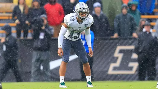 EMU: 2017: Played in all 12 games, starting 10, on defense...Made 50 tackles (33 solo, 17 assist) with half a tackle for loss...Had a seven solo tackle performance against Kentucky (Sept. 30)...First career interception in first game of the season against Charlotte (Sept. 1)...Also forced a fumble against Western Michigan (Oct. 21)...2016: Named a Second Team All-American on special teams by Pro Football Focus...Played in 12 games...Registered 50 tackles and two pass deflections...Recorded 10 takedowns on kickoff and two more on punt returns...Returned four kicks for a total of 71 yards on the season...Season-high 27-yard kick return against Ohio (Oct. 15)...Notched a season-high nine stops against Toledo (Oct. 8)...2015: Appeared in eight games for the Green and White... Returned one kick-off for seven yards...Also had a solo tackle versus Northern Illinois (Oct. 24)...HIGH SCHOOL: Was a two-way starter at Monacan High School under Head Coach Jim Henderson...Had 13 pass breakups, four interceptions, 6.5 tackles for loss, 1.5 sacks, one forced fumble, one fumble recovery and two touchdowns on the defensive side of the ball, while totaling 558 yards with 83 carries as a wide receiver in his senior season...Earned first team all-state honors as both a wide receiver and defensive back in his senior season and was All-4A South Region First Team on both sides of the ball...Garnered all-conference honors on both sides of the ball in his senior season and was both the offensive and defensive MVP...Was an all-conference selection in his junior season as well as an all-district honoree...Was a member of National Honor Society and honor roll...PERSONAL: Full name: Justin Alexander Moody...Son of Edward and Bernadette Moody...Has one brother, Javon, and one sister, Jovia...Communication and theater arts major.