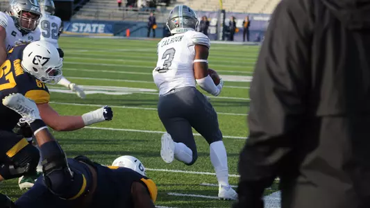EMU: Is the all-time leader in Eastern Michigan history with 49 career games started...Third with 196 career solo tackles…Stands at 347 stops, which is tied for ninth all-time at EMU...2019: Became just the seventh student-athlete in program history to collect All-MAC honors in three different seasons as he collected first team All-MAC honors...Started all 13 games as a defensive back…Finished with 108 total tackles (58 solo, 50 assisted), which ranked second on the team…Recorded 6.0 tackles for loss (20 yards) and three forced fumbles…Moved past 300 tackles in his career with a nine tackle performance against Western Michigan (Oct. 19)....Ranked eighth in the MAC and 46th in the FBS with 8.3 tackles per game...Had four games with 10-or-more stops, including a 15 tackle contest in the three-point victory over Illinois (Sept. 14)...Made a big sack for nine yards to go along with 10 tackles against Central Connecticut (Sept. 21)…Forced a fumble and tallied nine stops at in-state rival Central Michigan (Oct. 5)…Recorded 10 tackles with a force fumble and quarterback hurry at Toledo (Oct. 26)...Totaled 11 stops against Pittsburgh in the Quick Lane Bowl (Dec. 26)...Elected a team captain...Earned Second Team All-MAC Preseason All-MAC honors from both Athlon Sports and Phil Steele's College Football Preview...2018: Selected Third Team All-MAC...Started all 13 games, accumulated 84 tackles, 2.0 TFL, one sack, and three interceptions on the year...Earned a season and career-high 12 tackles at Buffalo (Sept. 15)...Ranked fifth in the MAC and 85th nationally in interceptions per game (0.2)...Was also 24th in the league in total tackles, a mark that ranked 203rd in the FBS...Matched his career-high 12 tackles against Northern Illinois, while adding his first sack of the season (Sept. 29)...Recovered a forced fumble against Western Michigan (Oct. 6)...Snagged an interception in three straight matchups, against Central Michigan (Nov. 3), Akron (Nov. 10) and at Kent State (Nov. 23)...Returned his pick at Akron 39 yards, setting the Eagles up for a touchdown (Nov. 10)...Nabbed Kent State’s fourth-down long ball to cut the Golden Flashes’ late comeback attempt short and secure the Eagles fifth-straight MAC victory (Nov. 23)...Selected Second Team Preseason All-MAC by Athlon Sports...2017: Earned the team's Defensive Hammer Award at the postseason banquet...Finished season as a Third Team All-MAC selection...Selected Fourth Team Preseason All-MAC Selection by Athlon Sports…Finished season with 78 total tackles, including 47 solo tackles, most on the Eagles...Racked up 16 tackles, 10 unassisted, against Toledo (Oct. 15)...2016: Named the E-Gridiron Group Defensive Newcomer of the Year...Started all 13 games for the Eagles...Ranked 69th nationally and fifth in the Mid-American Conference with three interceptions…Racked up 44 solo tackles and 77 total on the season...Returned an interception 27 yards against Old Dominion (Dec. 23) in the Popeyes Bahamas Bowl...HIGH SCHOOL: Attended Middletown High School in Middletown, Ohio...Played under Head Coach Chris Wells as a Middie...Ranked as a three-star recruit by Rivals and a two-star by Scout while being named as one of the top 100 Prospects in the state of Ohio by JJHuddle...Picked up first team all-district and all-conference accolades as a senior...Led the Middies in tackles for three years as well as being named the team’s Player of the Year in each of his final two seasons...In 2015, recorded 108 tackles, eight pass breakups, four tackles-for-loss, three recovered fumbles, a forced fumble and an interception...Also rushed for 493 yards on offense and had 105 yards receiving and 10 touchdowns...Averaged 44.4 yard per kickoff return...Against Lima Senior, ran for 134 yards and three scores on 19 carries, 122 of those yards came before halftime...Was a special mention all-state and first-team all-district selection as a junior...Invited to the North-South All-Star game...In 2014, had 102 tackles, three pass breakups, two fumble recoveries, a forced fumble and three interceptions...PERSONAL: Full name: Vincent Glenn Calhoun Jr....Son of Vincent Calhoun Sr. and Jessica Wright...Has three brothers Dalaquan, Dimetrain, and Veontae and four sisters, Dezjha, Apha, Zarri, and Vaniah...Sport management major.